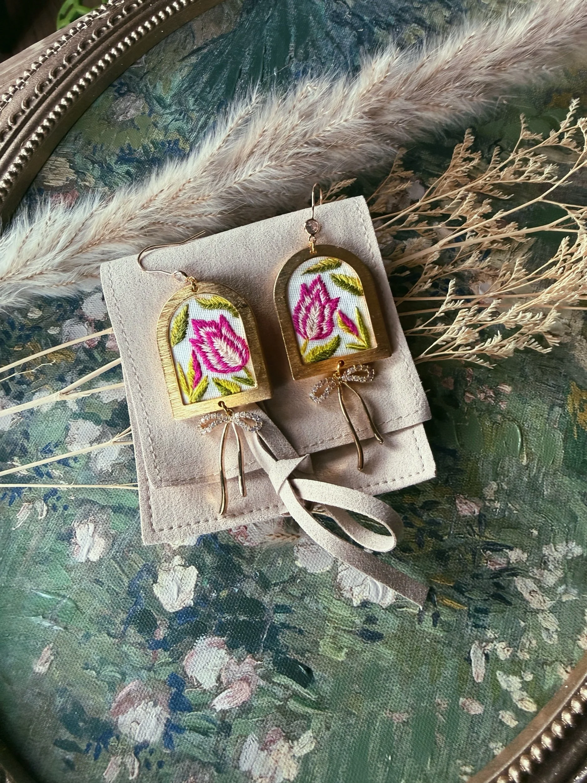 Shop › Flower Power πΌ Image 1 of 2 Image 2 of 2 Flower Power πΌ $60.00 Gold plated earrings with hand embroidered design. Hypoallergenic earring studs Add To Cart Added! Gold plated earrings with hand embroidered design. Hypoallergenic earring studs Reviews Reviewer Name Review Date Star Rating Description Posted on Etsy Product Show More